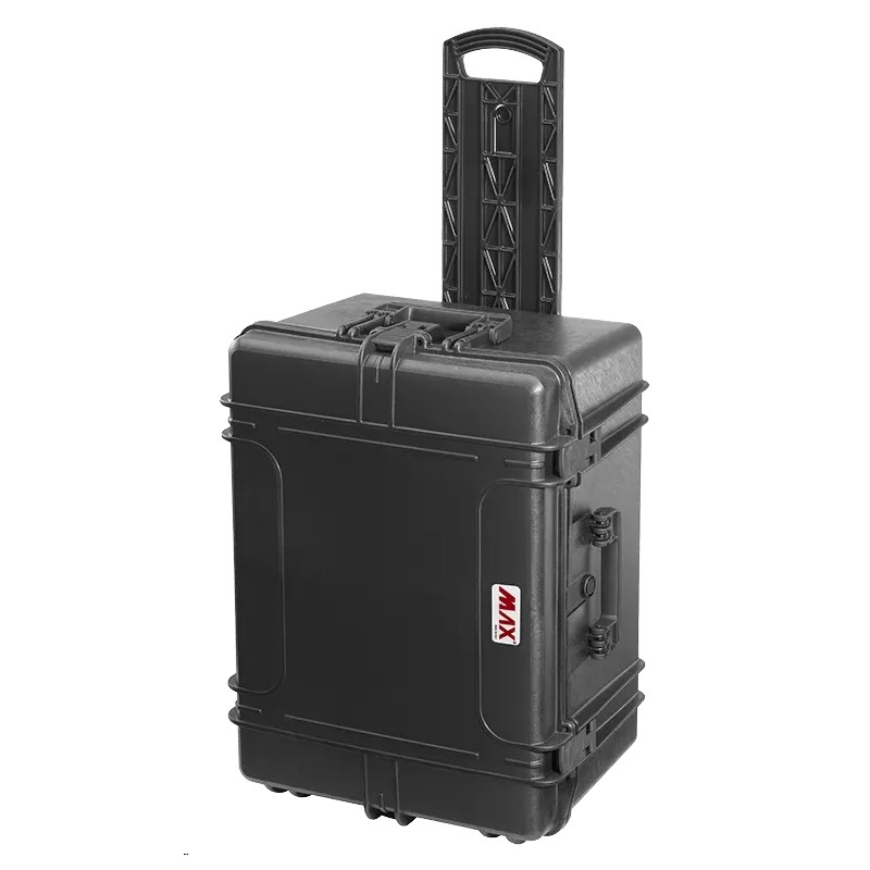 VALISE DE TRANSPORT MAX CASE IP67 NOIRE SANS MOUSSES - ROULETTES ET POIGNÉE TÉLESCOPIQUE - Dimensions Extérieures : 687 x 528 x 376mm - Dimensions intérieures: 620 x 460 x 340mm
