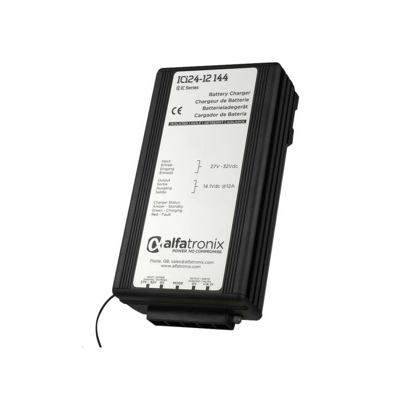 12V ou 24V nominal suivant la courbe de charge auto-régulée. Merci de vous référer à la courbe de