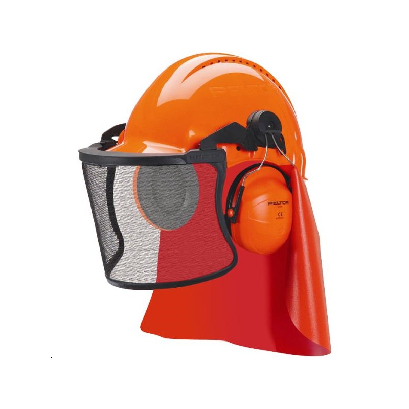 COIFFE FORESTIÈRE G3000 VENTILÉ PELTOR 3M - UVICATOR ABS ORANGE / BASANE SYNTHÉTIQUE / COQUILLES H31 atténuation 28dB / VISIÈRE GRILLAGÉE ACIER INOX V5C (1.8x2.5mm) - Protection pluie [GR3C] en option