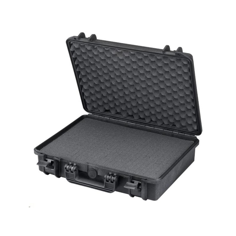 VALISE DE TRANSPORT MAX465 NOIRE- IP67 avec mousse - Dimensions externes: 502 x 415 x H 141 mm -Dimensions internes: 465 x 335 x H 125 mm - Poids: 2,5 kg