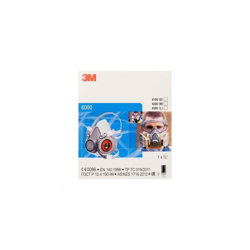 Kit prêt à l'emploi avec demi-masque réutilisable 3M™ 6200 (taille moyenne) et filtres A12P.