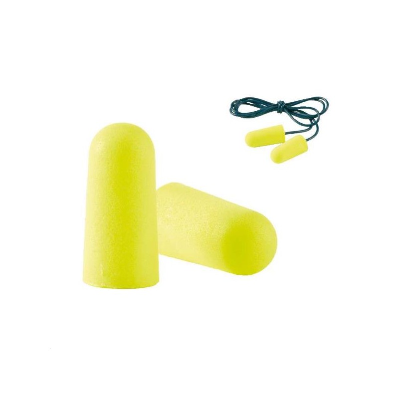 Les bouchons jaunes E-A-Rsoft Yellow Neons sont également disponibles avec une cordelette en vinyle bleu.